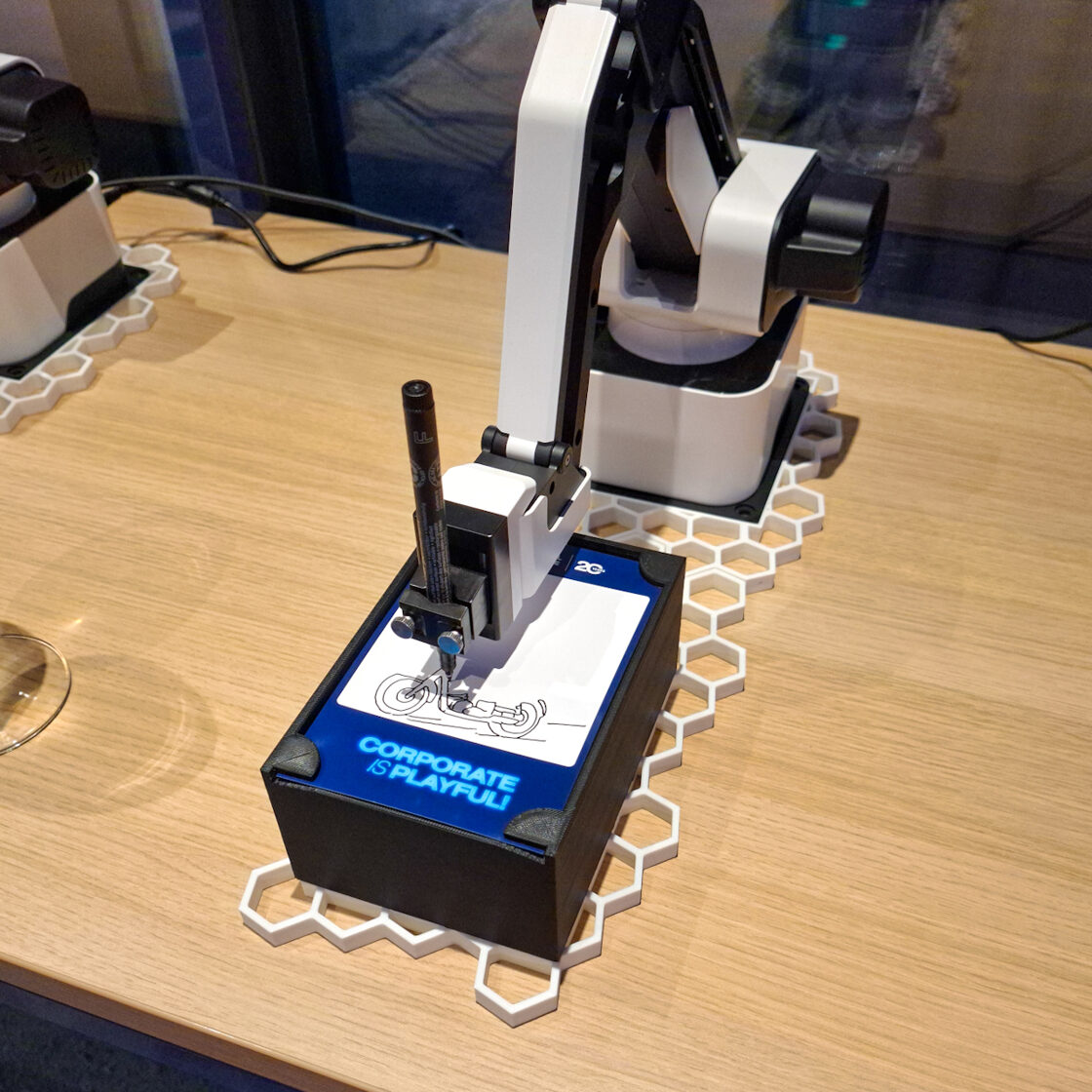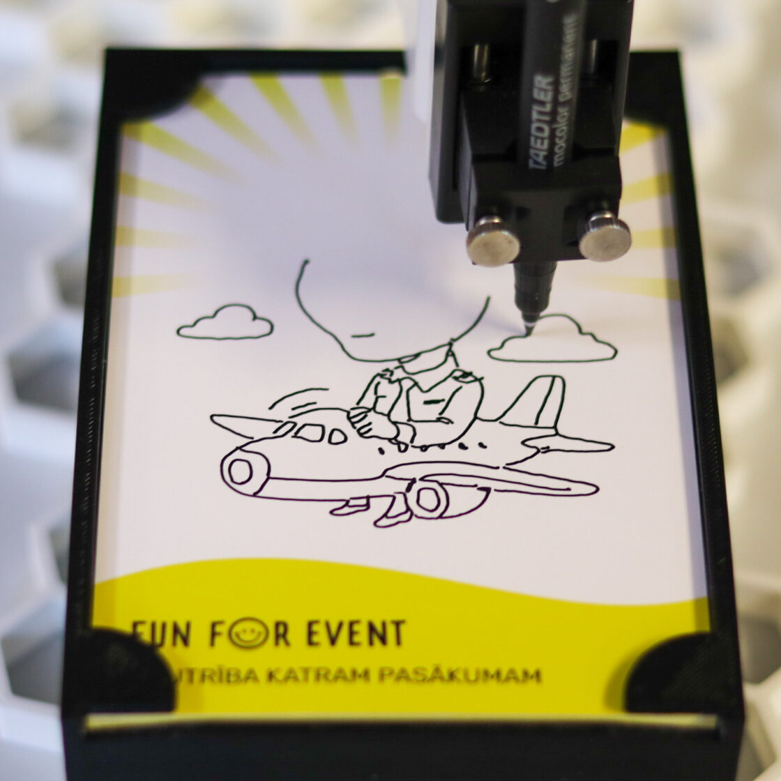 Unikāls mākslīgā intelekta robots, kas analizē un zīmē viesu portretus 30–60 sekundēs, bet radošākus, detalizētākus attēlus 1–3 minūtēs. Ideāli piemērots korporatīvajiem pasākumiem, konferencēm, izstādēm, ballītēm un citiem notikumiem.
