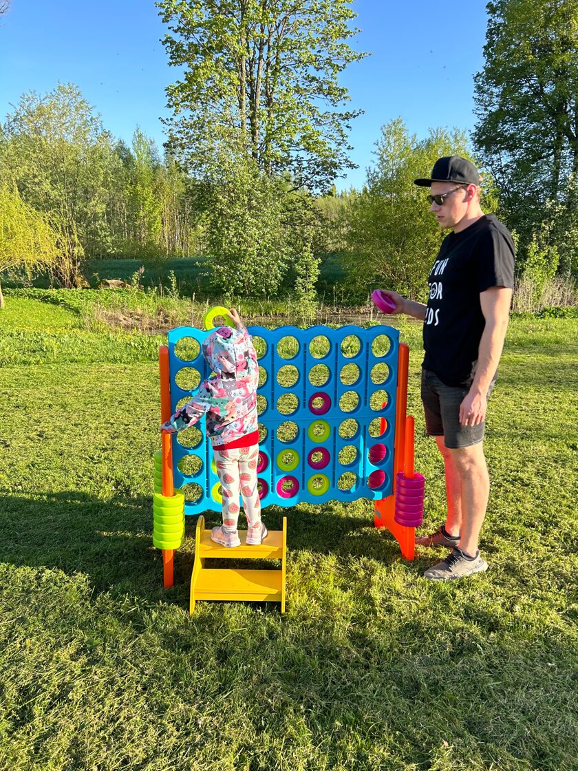 Var lietot gan ārā, gan iekštelpās. Nomas cenā iekļauts - Statīvs, mērķis, 8 metamie cirvji. Augstums 1,50m. Mērķa lielums 60x60cm.NOMAS CENA: