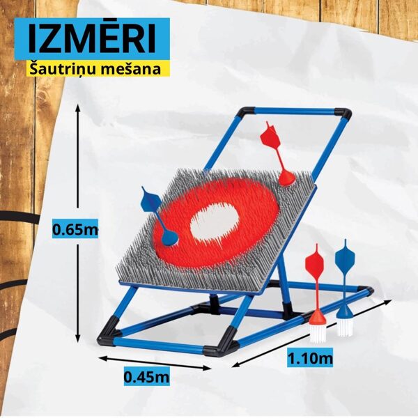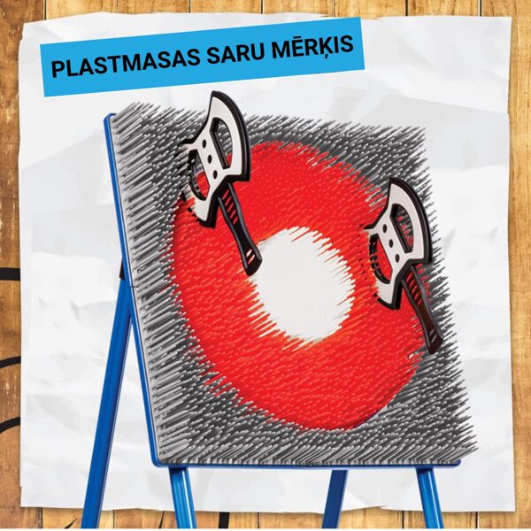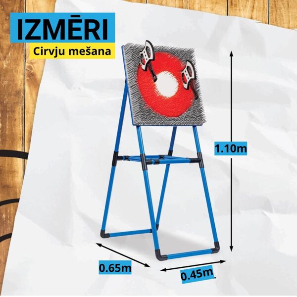 Var mest ar plastmasas cirvjiem vai bultām. Nomas cenā iekļauts - Statīvs, mērķis, 3 metamie cirvji, 4 metamās bultas. Augstums 1,10m. Mērķa lielums 45x45cmNOMAS CENA: