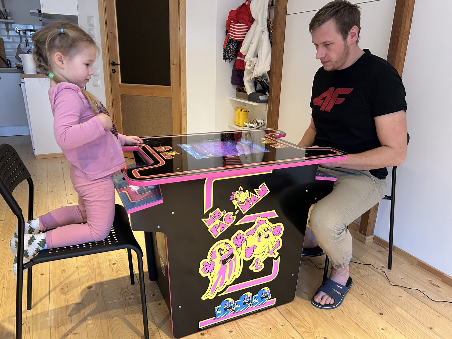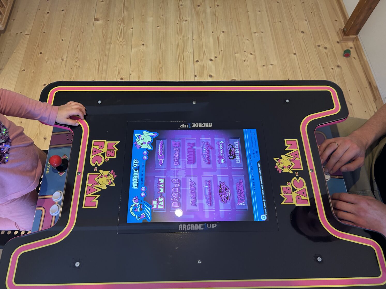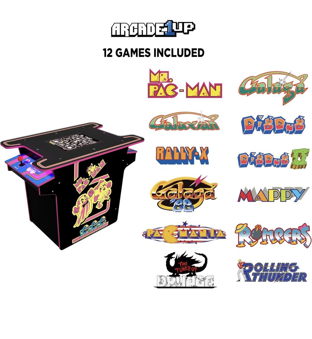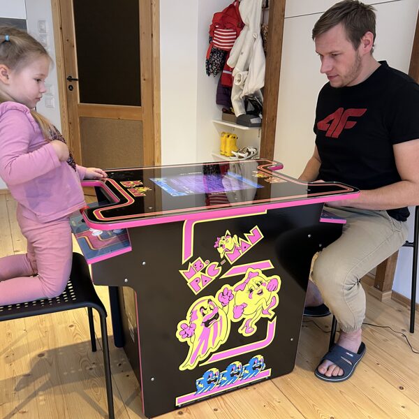Arkādes spēles galds ar 12 dažādām spēlēm. Vienlaicīgi var spēlēt 2 dalībnieki,mainoties. Interesantaizklaide, dažādām auditorijām.